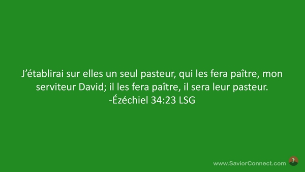 J'établirai sur elles un seul pasteur, qui les fera paître, mon serviteur David; il les fera paître, il sera leur pasteur. -Ézéchiel 34:23 LSG