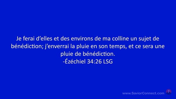 Je ferai d'elles et des environs de ma colline un sujet de bénédiction; j'enverrai la pluie en son temps, et ce sera une pluie de bénédiction. -Ézéchiel 34:26 LSG
