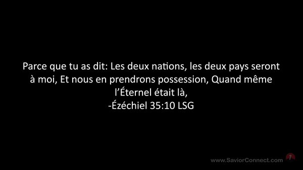 Parce que tu as dit: Les deux nations, les deux pays seront à moi, Et nous en prendrons possession, Quand même l'Éternel était là, -Ézéchiel 35:10 LSG