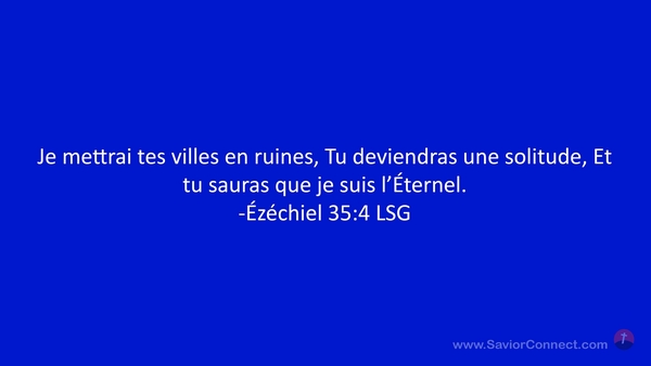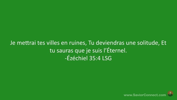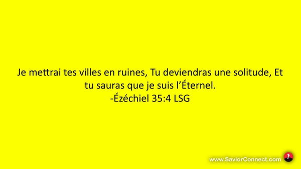 Je mettrai tes villes en ruines, Tu deviendras une solitude, Et tu sauras que je suis l'Éternel. -Ézéchiel 35:4 LSG