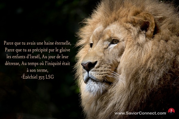 Parce que tu avais une haine éternelle, Parce que tu as précipité par le glaive les enfants d'Israël, Au jour de leur détresse, Au temps où l'iniquité était à son terme, -Ézéchiel 35:5 LSG