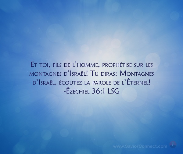 Et toi, fils de l'homme, prophétise sur les montagnes d'Israël! Tu diras: Montagnes d'Israël, écoutez la parole de l'Éternel! -Ézéchiel 36:1 LSG