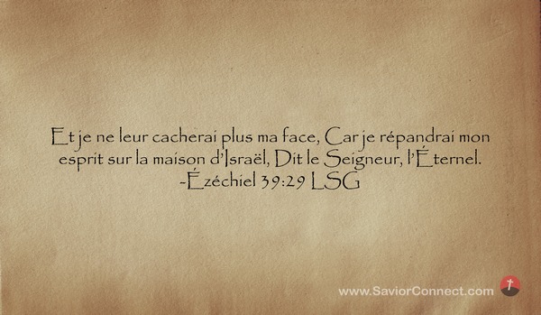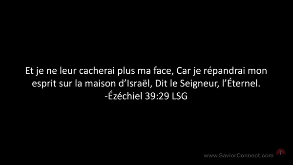 Et je ne leur cacherai plus ma face, Car je répandrai mon esprit sur la maison d'Israël, Dit le Seigneur, l'Éternel. -Ézéchiel 39:29 LSG