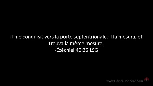 Il me conduisit vers la porte septentrionale. Il la mesura, et trouva la même mesure, -Ézéchiel 40:35 LSG