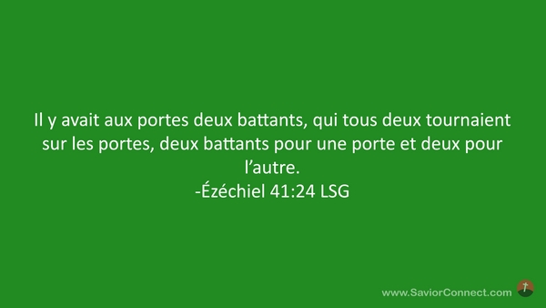 Il y avait aux portes deux battants, qui tous deux tournaient sur les portes, deux battants pour une porte et deux pour l'autre. -Ézéchiel 41:24 LSG
