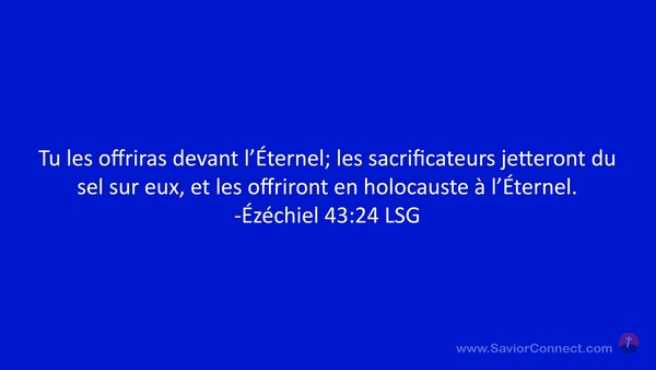 Tu les offriras devant l'Éternel; les sacrificateurs jetteront du sel sur eux, et les offriront en holocauste à l'Éternel. -Ézéchiel 43:24 LSG