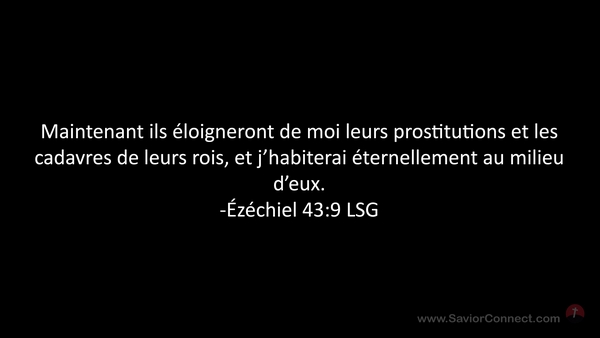 Maintenant ils éloigneront de moi leurs prostitutions et les cadavres de leurs rois, et j'habiterai éternellement au milieu d'eux. -Ézéchiel 43:9 LSG