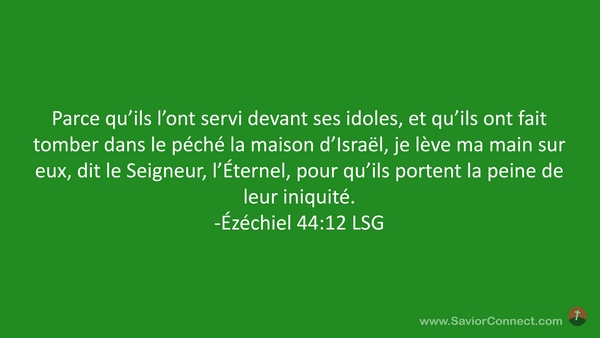 Parce qu'ils l'ont servi devant ses idoles, et qu'ils ont fait tomber dans le péché la maison d'Israël, je lève ma main sur eux, dit le Seigneur, l'Éternel, pour qu'ils portent la peine de leur iniquité. -Ézéchiel 44:12 LSG