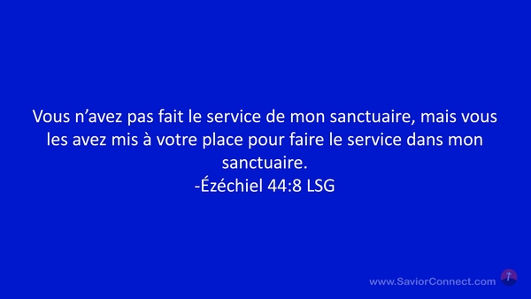 Vous n'avez pas fait le service de mon sanctuaire, mais vous les avez mis à votre place pour faire le service dans mon sanctuaire. -Ézéchiel 44:8 LSG