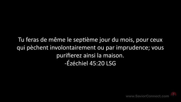Tu feras de même le septième jour du mois, pour ceux qui pèchent involontairement ou par imprudence; vous purifierez ainsi la maison. -Ézéchiel 45:20 LSG