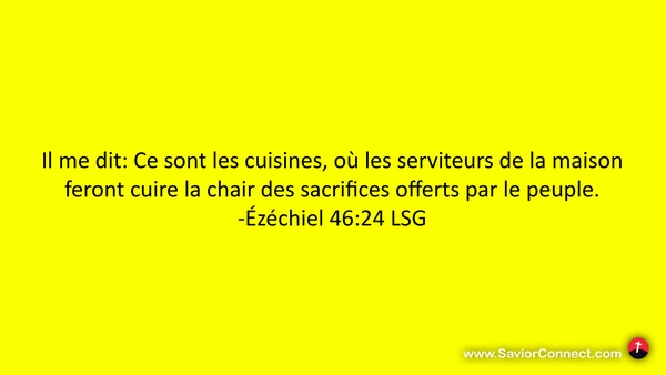 Il me dit: Ce sont les cuisines, où les serviteurs de la maison feront cuire la chair des sacrifices offerts par le peuple. -Ézéchiel 46:24 LSG