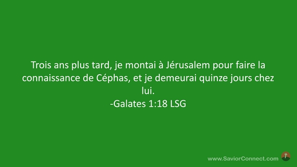 Trois ans plus tard, je montai à Jérusalem pour faire la connaissance de Céphas, et je demeurai quinze jours chez lui. -Galates 1:18 LSG