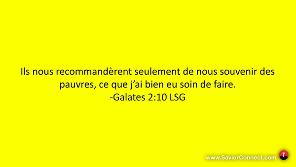 Ils nous recommandèrent seulement de nous souvenir des pauvres, ce que j'ai bien eu soin de faire. -Galates 2:10 LSG