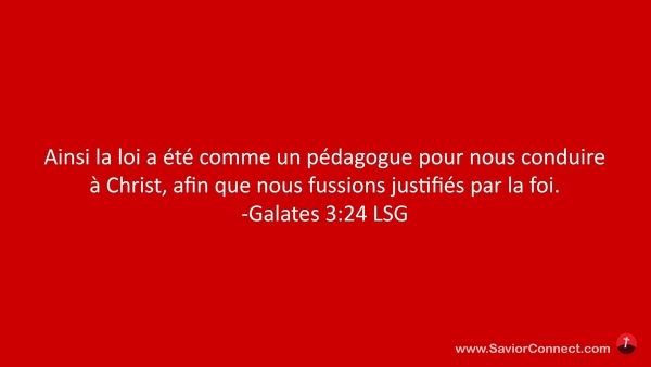 Ainsi la loi a été comme un pédagogue pour nous conduire à Christ, afin que nous fussions justifiés par la foi. -Galates 3:24 LSG