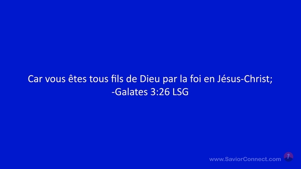 Car vous êtes tous fils de Dieu par la foi en Jésus-Christ; -Galates 3:26 LSG