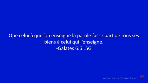 Que celui à qui l'on enseigne la parole fasse part de tous ses biens à celui qui l'enseigne. -Galates 6:6 LSG