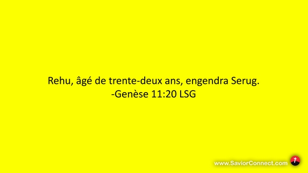 Rehu, âgé de trente-deux ans, engendra Serug. -Genèse 11:20 LSG