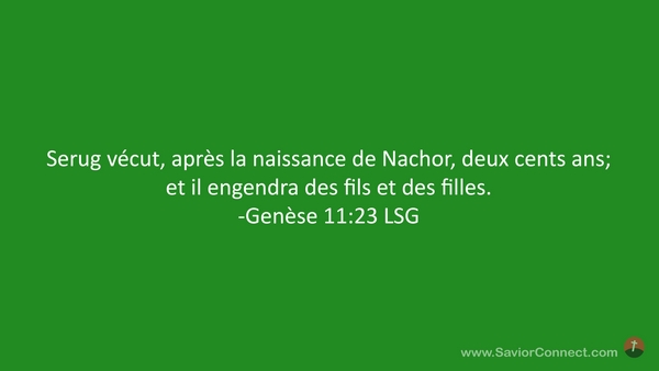 Serug vécut, après la naissance de Nachor, deux cents ans; et il engendra des fils et des filles. -Genèse 11:23 LSG
