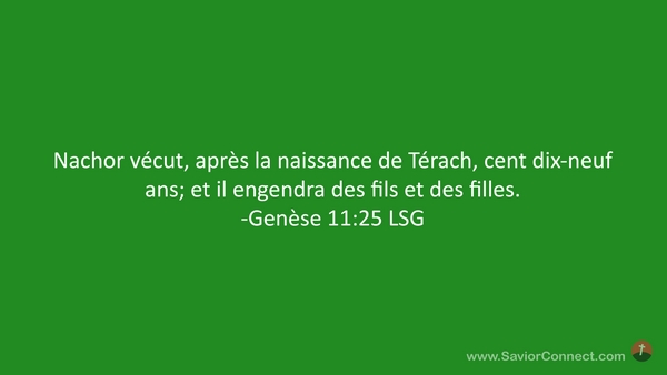 Nachor vécut, après la naissance de Térach, cent dix-neuf ans; et il engendra des fils et des filles. -Genèse 11:25 LSG