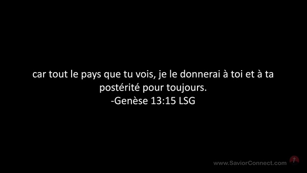 car tout le pays que tu vois, je le donnerai à toi et à ta postérité pour toujours. -Genèse 13:15 LSG