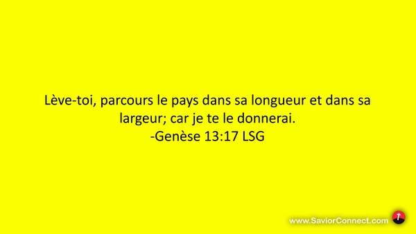 Lève-toi, parcours le pays dans sa longueur et dans sa largeur; car je te le donnerai. -Genèse 13:17 LSG