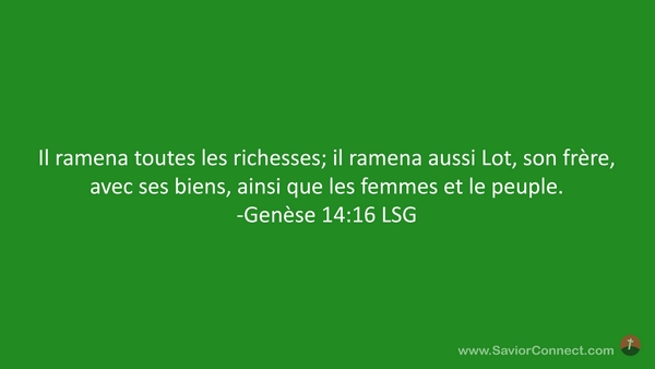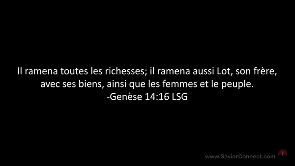 Il ramena toutes les richesses; il ramena aussi Lot, son frère, avec ses biens, ainsi que les femmes et le peuple. -Genèse 14:16 LSG