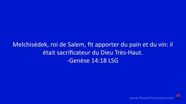 Melchisédek, roi de Salem, fit apporter du pain et du vin: il était sacrificateur du Dieu Très-Haut. -Genèse 14:18 LSG