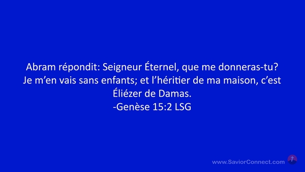 Abram répondit: Seigneur Éternel, que me donneras-tu? Je m'en vais sans enfants; et l'héritier de ma maison, c'est Éliézer de Damas. -Genèse 15:2 LSG