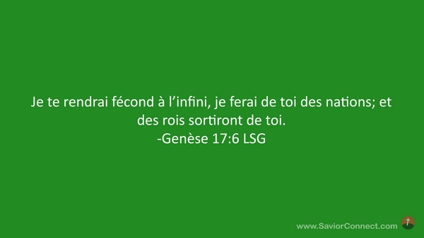 Je te rendrai fécond à l'infini, je ferai de toi des nations; et des rois sortiront de toi. -Genèse 17:6 LSG