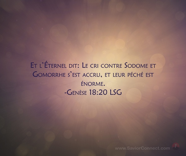 Et l'Éternel dit: Le cri contre Sodome et Gomorrhe s'est accru, et leur péché est énorme. -Genèse 18:20 LSG