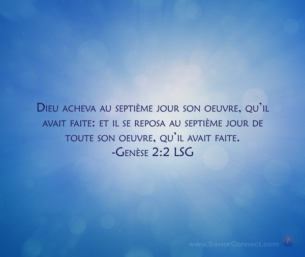 Dieu acheva au septième jour son oeuvre, qu'il avait faite: et il se reposa au septième jour de toute son oeuvre, qu'il avait faite. -Genèse 2:2 LSG