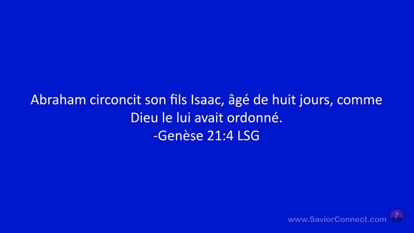 Abraham circoncit son fils Isaac, âgé de huit jours, comme Dieu le lui avait ordonné. -Genèse 21:4 LSG