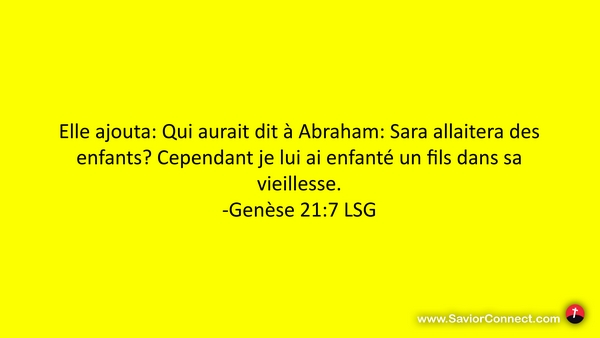 Elle ajouta: Qui aurait dit à Abraham: Sara allaitera des enfants? Cependant je lui ai enfanté un fils dans sa vieillesse. -Genèse 21:7 LSG