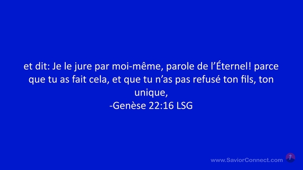 et dit: Je le jure par moi-même, parole de l'Éternel! parce que tu as fait cela, et que tu n'as pas refusé ton fils, ton unique, -Genèse 22:16 LSG