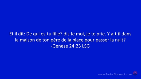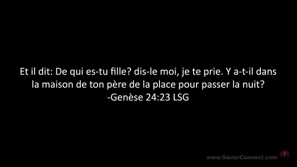 Et il dit: De qui es-tu fille? dis-le moi, je te prie. Y a-t-il dans la maison de ton père de la place pour passer la nuit? -Genèse 24:23 LSG
