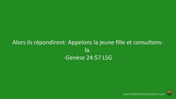 Alors ils répondirent: Appelons la jeune fille et consultons-la. -Genèse 24:57 LSG