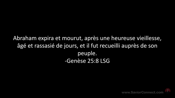 Abraham expira et mourut, après une heureuse vieillesse, âgé et rassasié de jours, et il fut recueilli auprès de son peuple. -Genèse 25:8 LSG