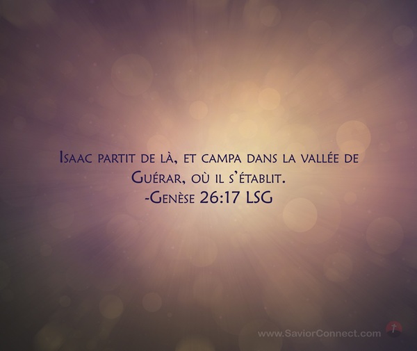Isaac partit de là, et campa dans la vallée de Guérar, où il s'établit. -Genèse 26:17 LSG