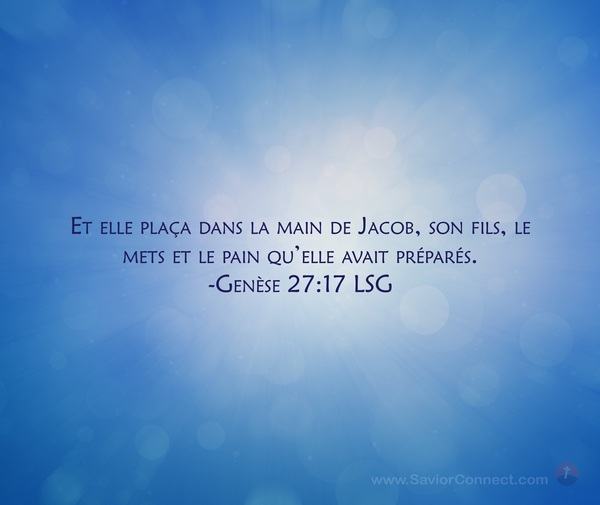 Et elle plaça dans la main de Jacob, son fils, le mets et le pain qu'elle avait préparés. -Genèse 27:17 LSG