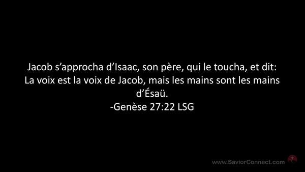 Jacob s'approcha d'Isaac, son père, qui le toucha, et dit: La voix est la voix de Jacob, mais les mains sont les mains d'Ésaü. -Genèse 27:22 LSG
