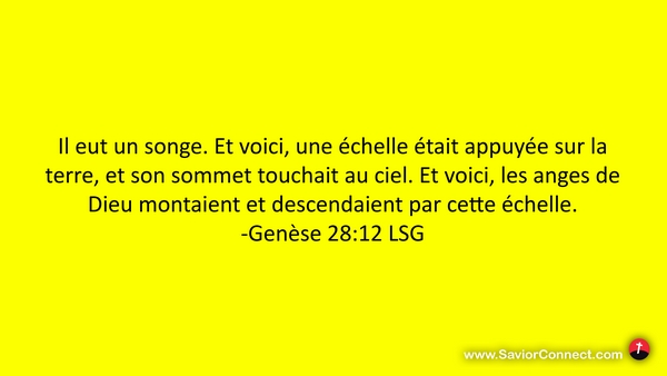 Il eut un songe. Et voici, une échelle était appuyée sur la terre, et son sommet touchait au ciel. Et voici, les anges de Dieu montaient et descendaient par cette échelle. -Genèse 28:12 LSG