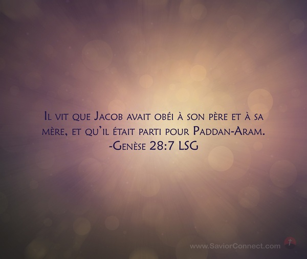 Il vit que Jacob avait obéi à son père et à sa mère, et qu'il était parti pour Paddan-Aram. -Genèse 28:7 LSG