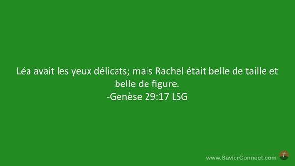 Léa avait les yeux délicats; mais Rachel était belle de taille et belle de figure. -Genèse 29:17 LSG