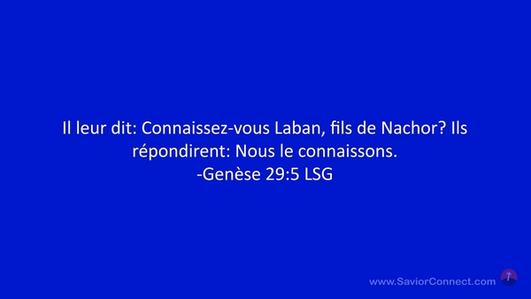 Il leur dit: Connaissez-vous Laban, fils de Nachor? Ils répondirent: Nous le connaissons. -Genèse 29:5 LSG