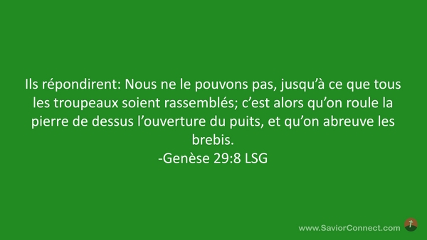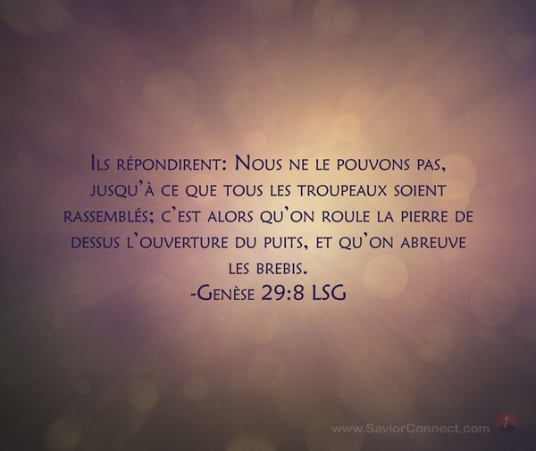 Ils répondirent: Nous ne le pouvons pas, jusqu'à ce que tous les troupeaux soient rassemblés; c'est alors qu'on roule la pierre de dessus l'ouverture du puits, et qu'on abreuve les brebis. -Genèse 29:8 LSG