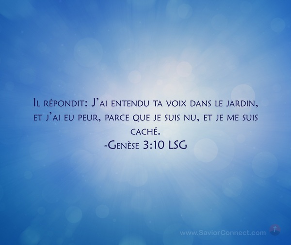 Il répondit: J'ai entendu ta voix dans le jardin, et j'ai eu peur, parce que je suis nu, et je me suis caché. -Genèse 3:10 LSG