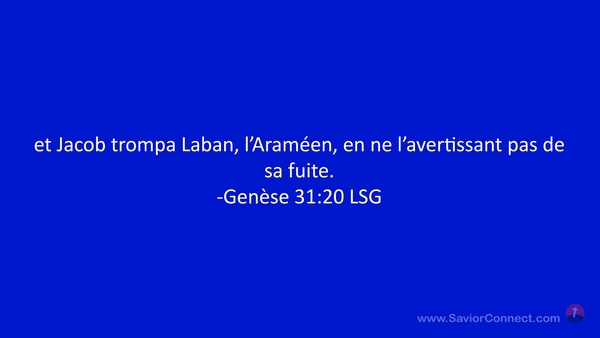 et Jacob trompa Laban, l'Araméen, en ne l'avertissant pas de sa fuite. -Genèse 31:20 LSG