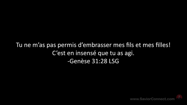 Tu ne m'as pas permis d'embrasser mes fils et mes filles! C'est en insensé que tu as agi. -Genèse 31:28 LSG