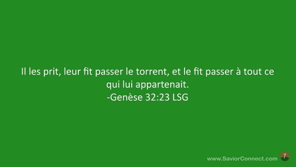 Il les prit, leur fit passer le torrent, et le fit passer à tout ce qui lui appartenait. -Genèse 32:23 LSG