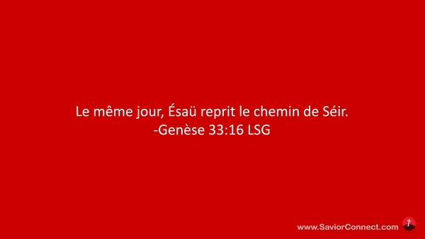 Le même jour, Ésaü reprit le chemin de Séir. -Genèse 33:16 LSG